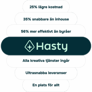 Med Hasty får ni tillgång till seniora experter som levererar on-brand med premiumkvalitet. Ni får rätt kompetens i rätt tid och kan alltid räkna med att ert material håller högsta nivå.